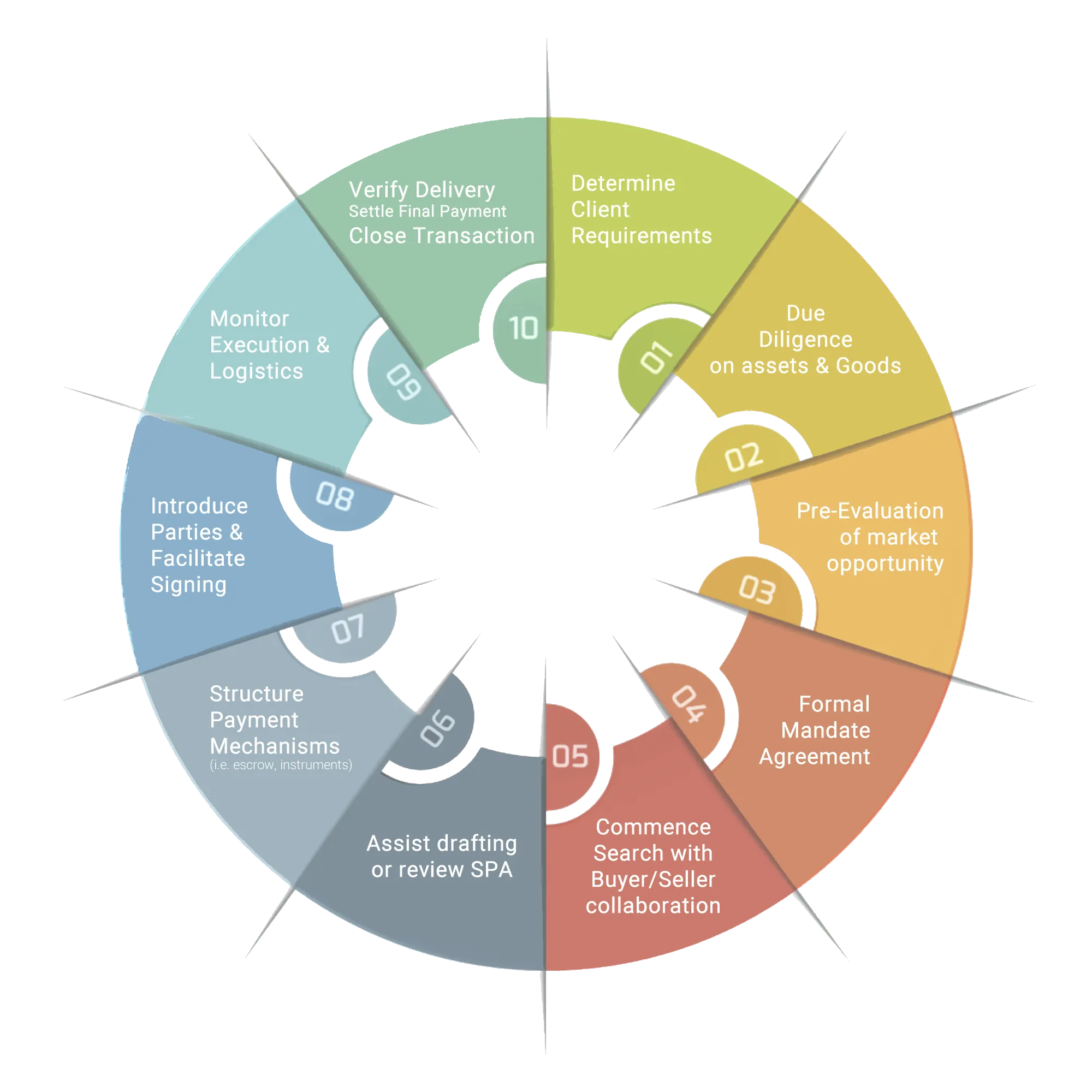 Our services relate to intermediation and brokerage. We do not act as financial advisor or fund custodian. Our role is non-discretionary and strictly by mandate.